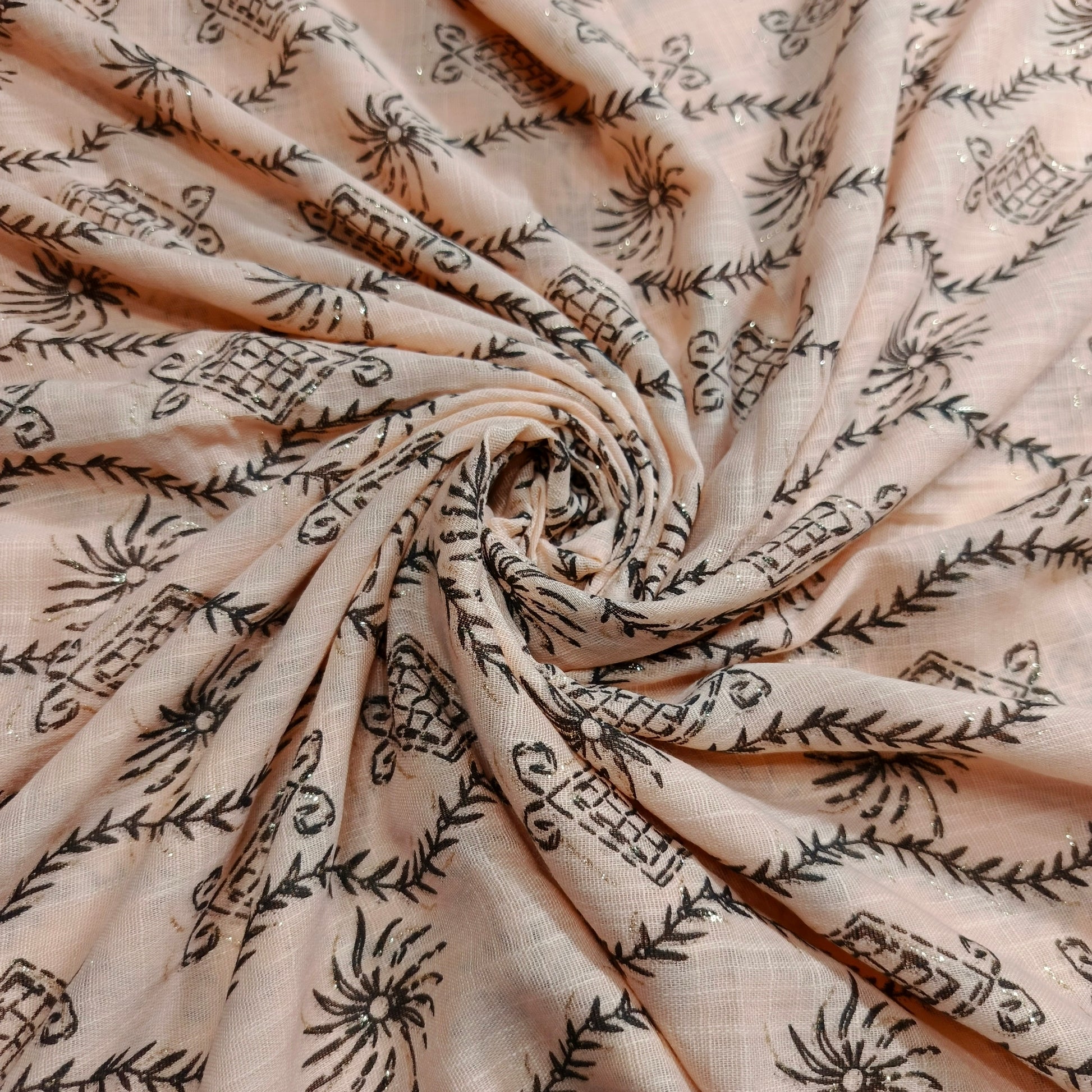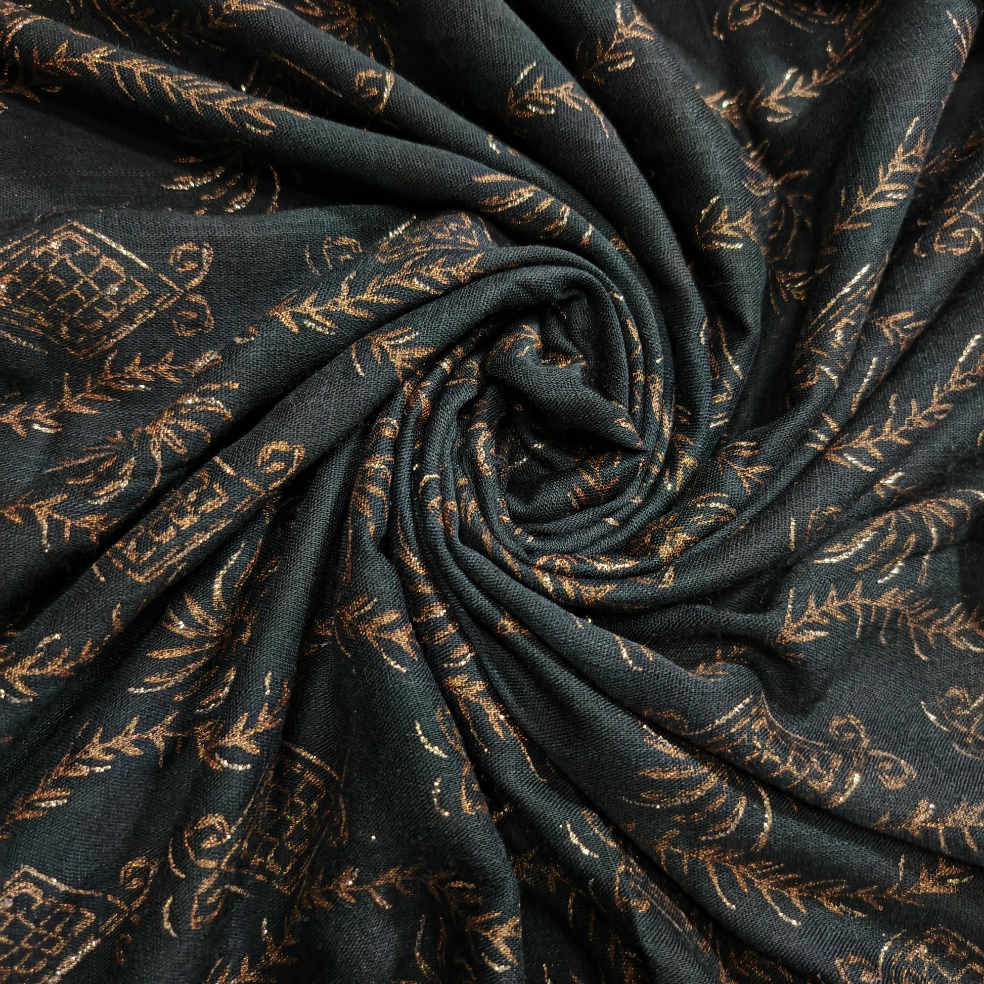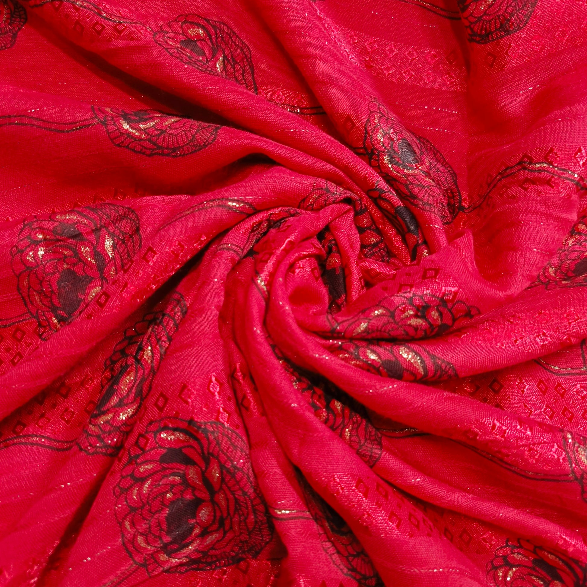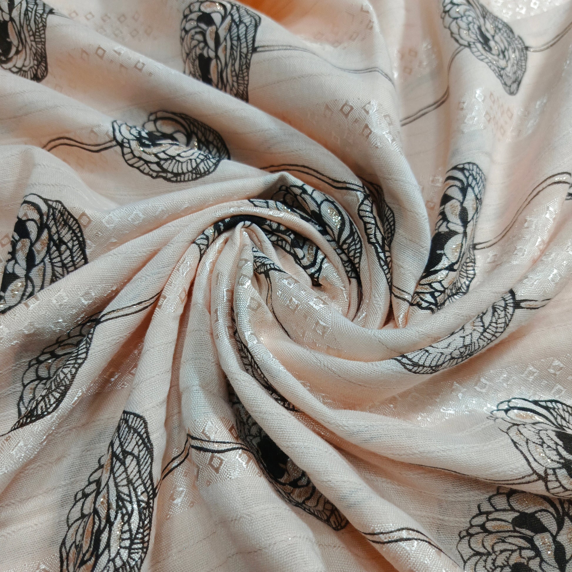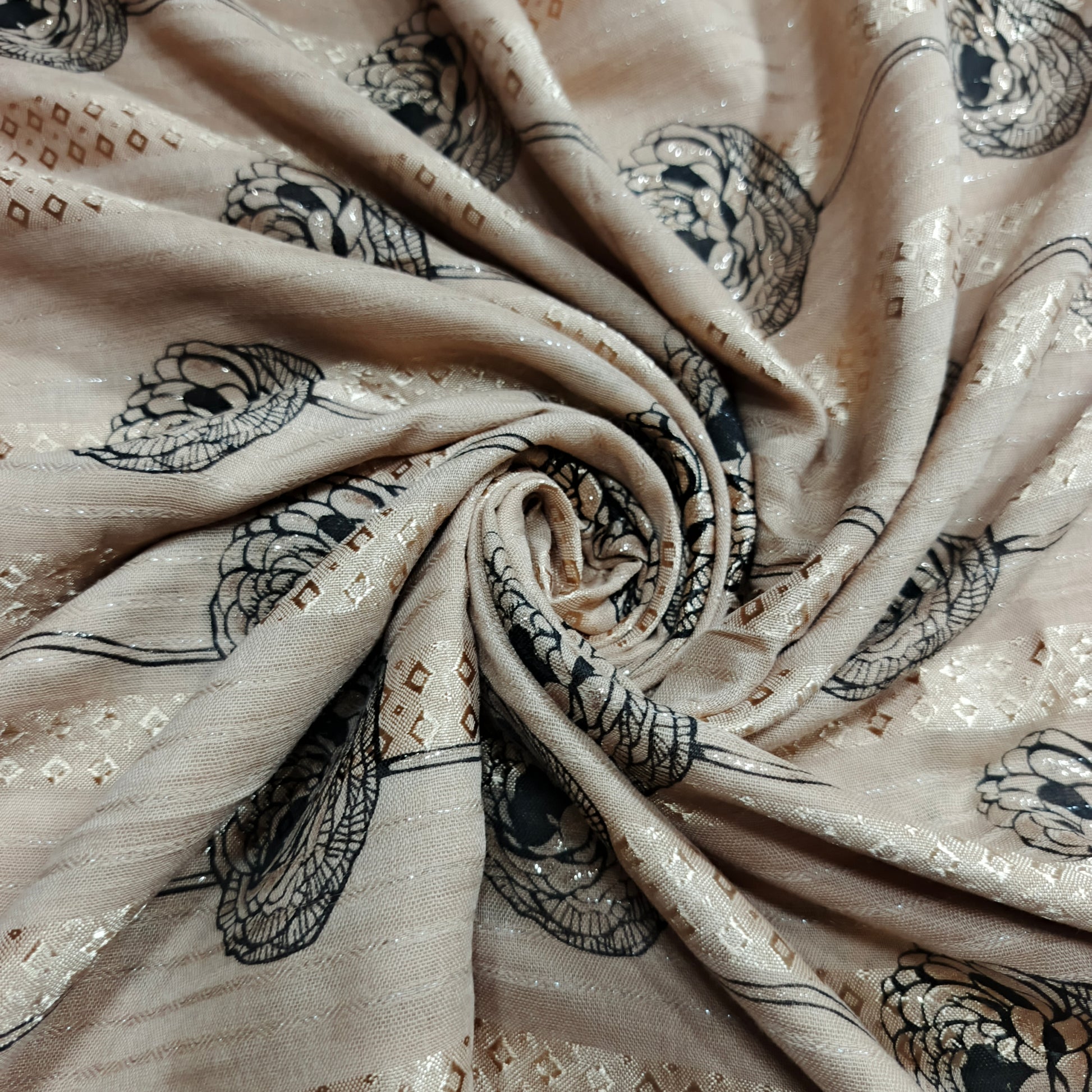 Capture attention with the dazzling shimmer of our Lawn Foiled Work fabric. This fabric features precisely applied foil accents on a lightweight lawn base, creating a captivating interplay of light and texture.