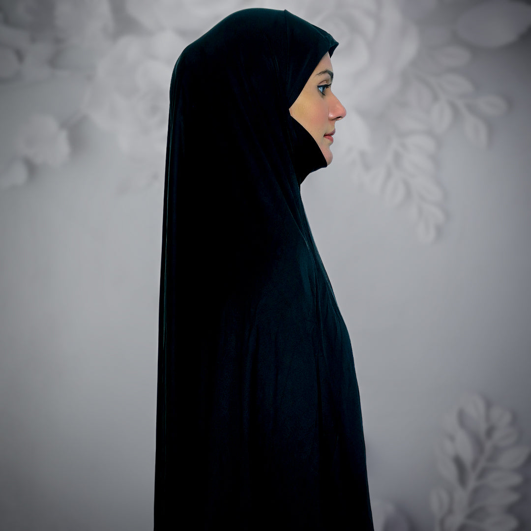 These are soft touch prayer scarves against the skin, which make it perfect for long hours of worship. The draped ones drape so beautifully and hold perfectly in their place so you'll have nothing to be distracted by as you go about your prayers.